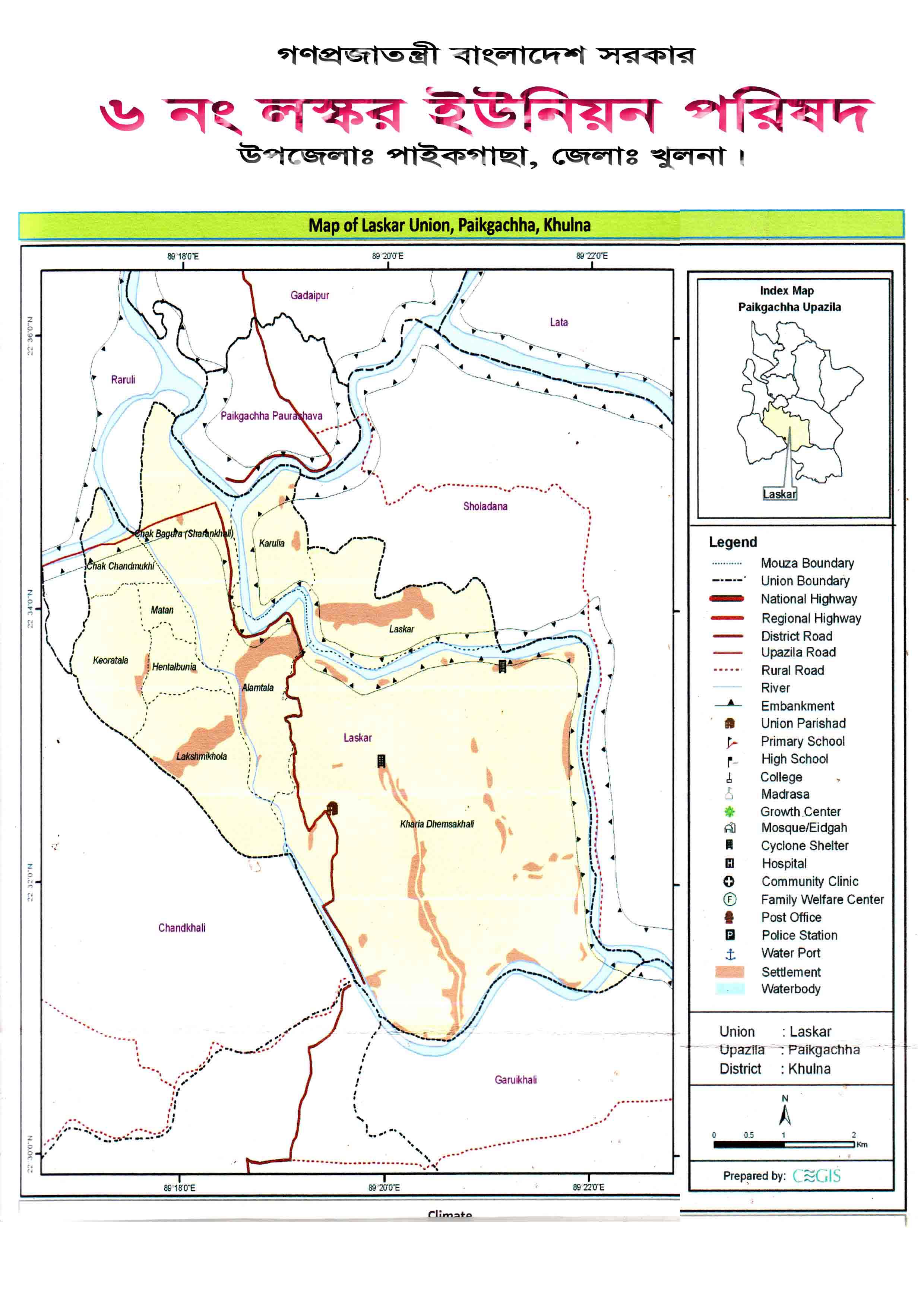 ৬নং লস্কর ইউনিয়নের দক্ষিনে গড়ইখালী ইউনিয়ন, পশ্চিমে চাঁদখালী ইউনিয়ন, উত্তরে পাইকগাছা পৌরসভা, পূর্বে সোলাদানা।
